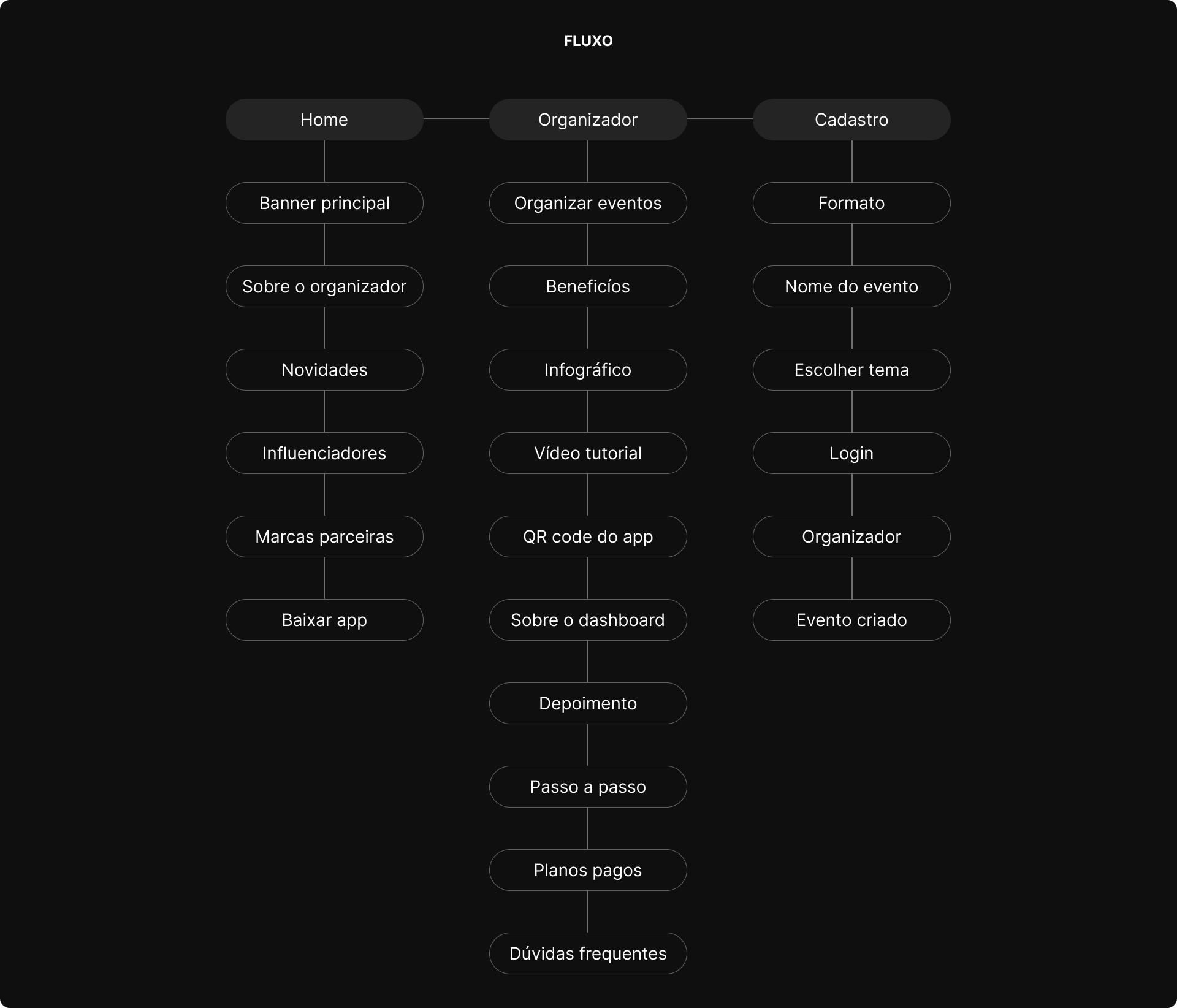 O objetivo desse projeto foi refazer a página principal do site, criar uma página específica para os organizadores de eventos e desenvolver um fluxo de cadastro para novos eventos.
