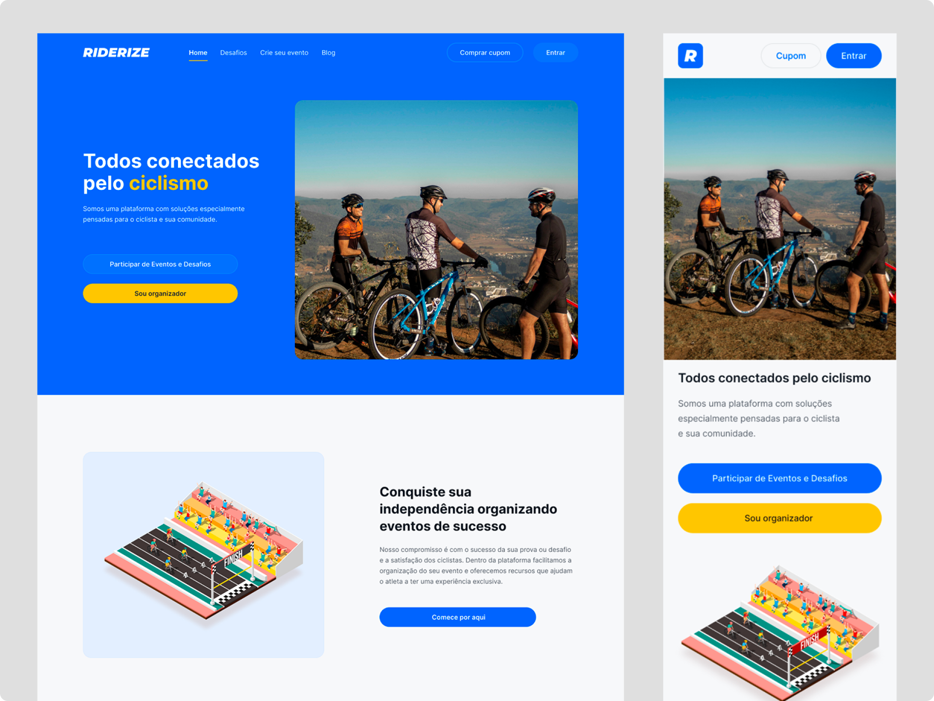 Riderize é uma plataforma digital com o intuito de criar e organizar eventos online ou presenciais para ciclistas amadores.